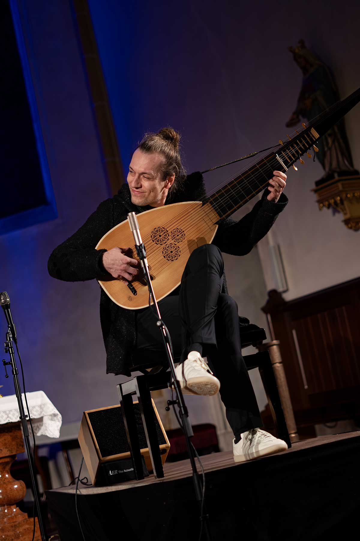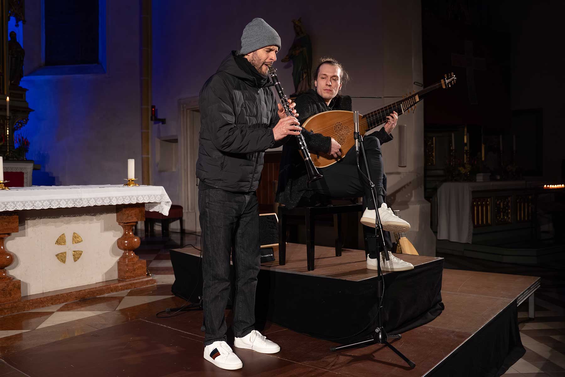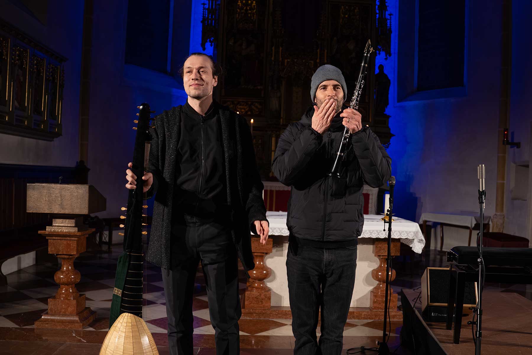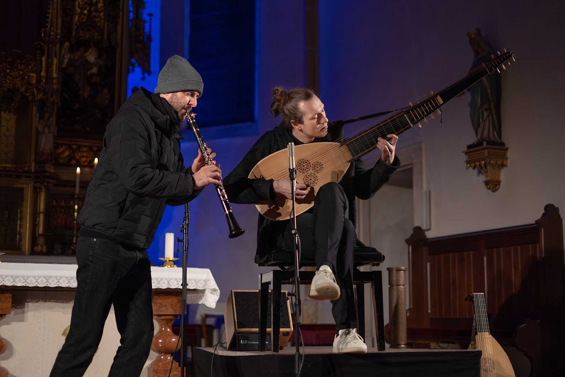 Es gibt diese Abende, bei denen man schon währenddessen weiß: Das ist jetzt nicht einfach ein Konzert. Das ist… irgendwas anderes. Schwer zu greifen. Und genau deshalb so besonders. So ein Abend war das. Die Pfarrkirche Aschbach hat sich an diesem Palm-Samstag in einen Resonanzraum verwandelt, der weit mehr war als nur Kulisse. Ein Ort, an dem die Zeit langsamer wurde und die Wahrnehmung weiter. Zwei Musiker. Klarinette und Laute. Eine Kombination, die es so gar nicht geben dürfte – und die genau daraus ihre Kraft zieht. Was daraus entstanden ist, war kein Nebeneinander und kein klassisches Zusammenspiel. Es war ein Verschmelzen. Ein musikalisches Miteinander, so selbstverständlich und gleichzeitig so fein, dass sich jede Grenze aufgelöst hat. Und ganz leise hat sich dabei noch etwas Drittes dazugesellt: Das Verschmelzen mit dem Publikum. Oder besser gesagt: ein gemeinsamer Atem.