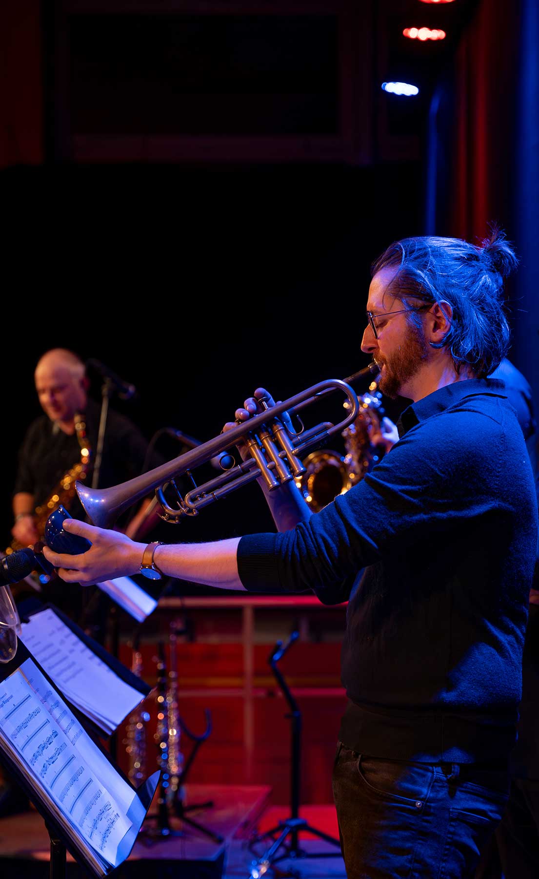 Zentrales Werk im 2. Teil war ein Teil der monumentalen Komposition von Josef Wagner, die „NOE Jazz Sinfonie – Connections for Trumpet and Band“ im Original ein einstündiges Werk für Solotrompete (Lorenz Raab) und Jazzorchester.