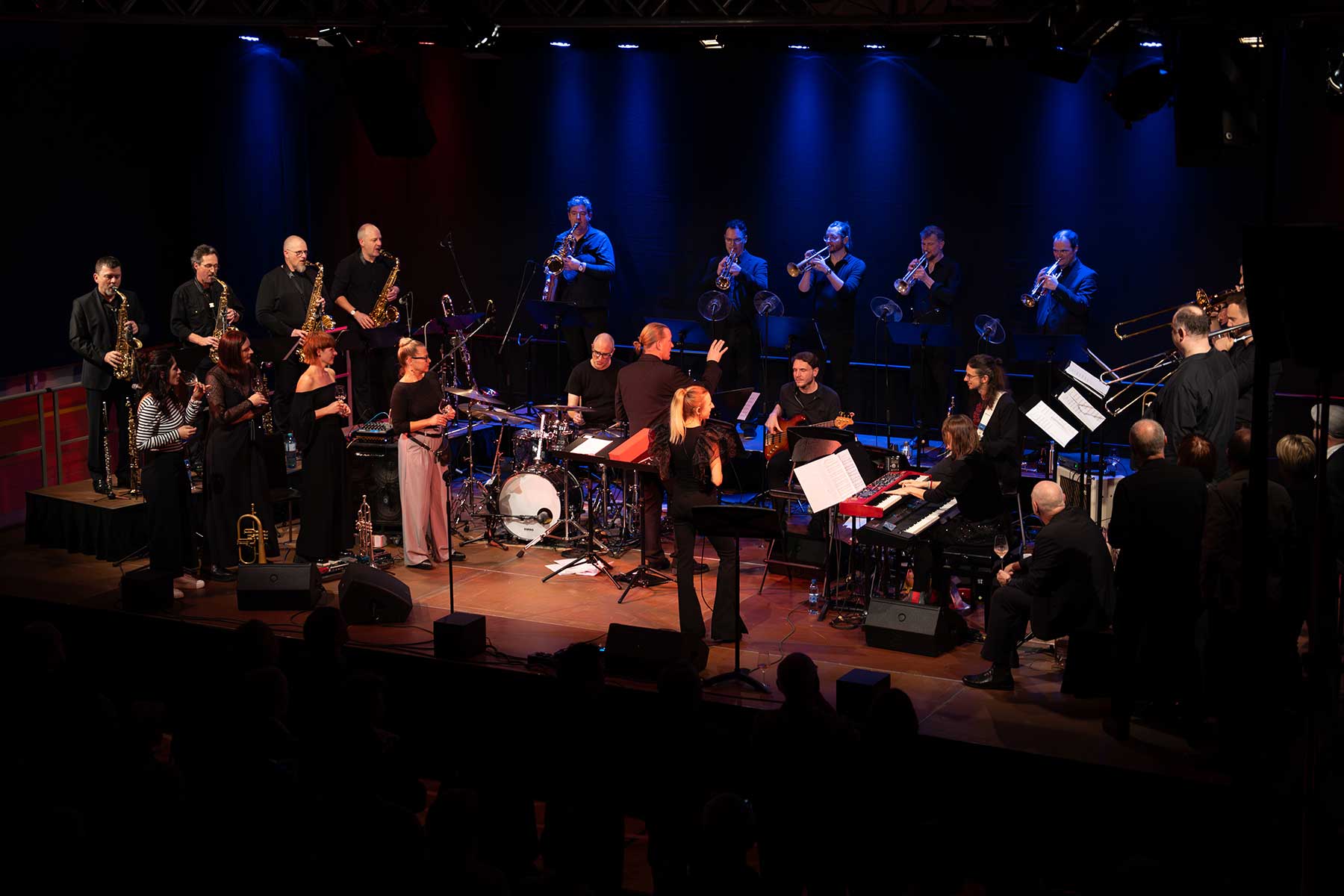 Ein Ausnahmezustand, eine Ära, ein Abend. Was für ein Finale. 25 Jahre Musikgeschichte, Freundschaft, Wucht, Können, Freude, Vielfalt, die die Sporthalle erfüllt haben. Jeder Ton war ein Statement, jede Nummer ein eigenes Denkmal. Die Musiker*innen der LA Big Band haben nicht einfach ein Konzert gespielt. Sie haben ein Fest gefeiert, eine musikalische Verbeugung vor ihrer eigenen Geschichte zelebriert und eine ganze Ära voller Hingabe und Liebe würdevoll-furios verabschiedet. Und zwar mit einem Best-of-Programm, das seinen Namen mehr als verdient hat. Aus jedem Album wurde mindestens ein Stück –  ausschließlich Eigenkompositionen – gespielt. Persönlich, individuell, leidenschaftlich. Eben typisch LA Big Band. Zweieinhalb Jahrzehnte Klangabenteuer, Experimente, Freundschaften, Leidenschaften und Herausforderungen haben sich in Groove, Beat, Vibe, Drive, Melodie, Feel und purem Sound materialisiert. Klangliche Perspektiven wurden erneut eröffnet, Erinnerungen vertont, Geschichten hörbar gemacht.